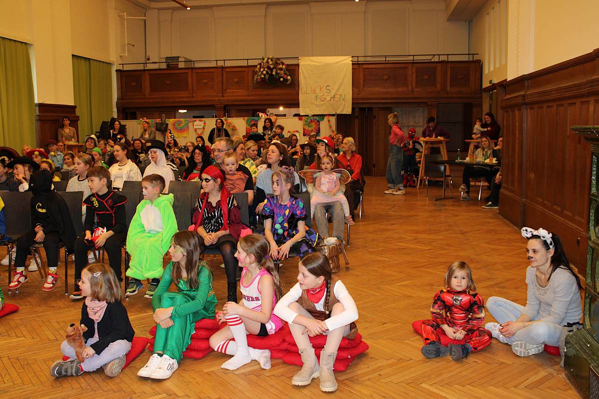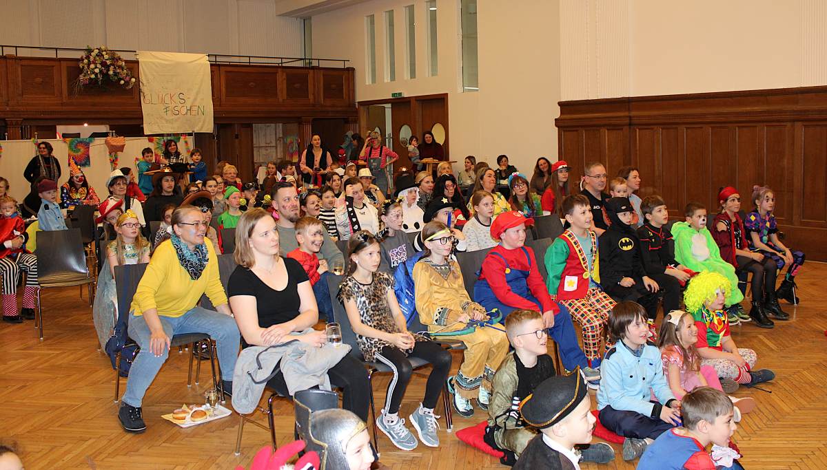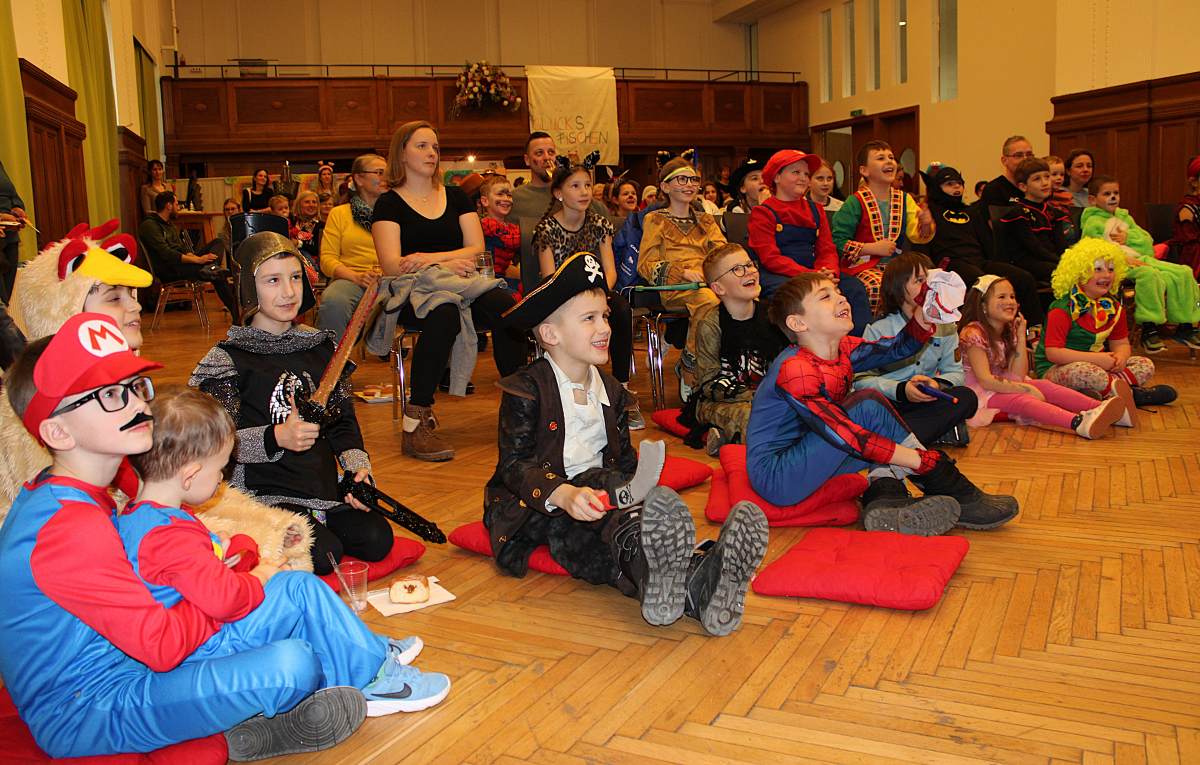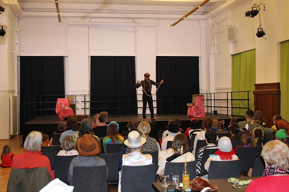 Über 100 große und kleine Gäste trudelten pünktlich um 15.00 Uhr verkleidet, maskiert oder "normal" in den Saal und warteten gespannt auf Daniel Morelli, der mit lautem Rufen und Applaus auf die Bühne gebrüllt wurde.