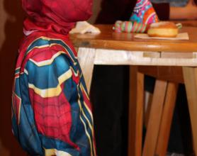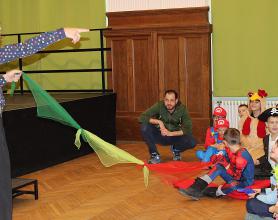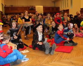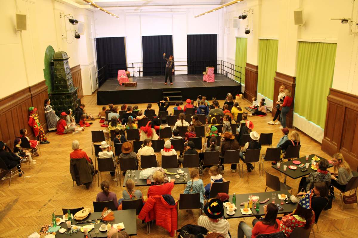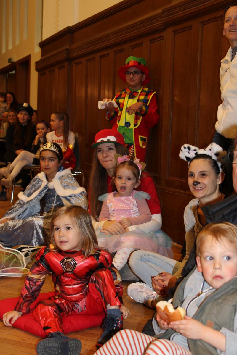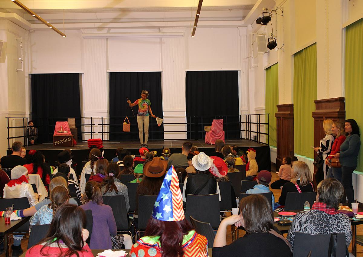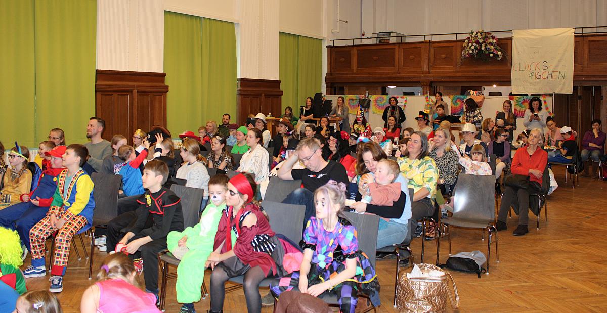 Über 100 große und kleine Gäste trudelten pünktlich um 15.00 Uhr verkleidet, maskiert oder "normal" in den Saal und warteten gespannt auf Daniel Morelli, der mit lautem Rufen und Applaus auf die Bühne gebrüllt wurde.