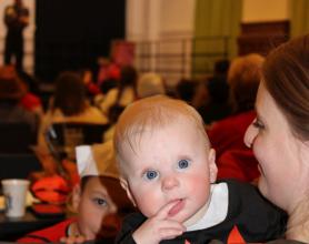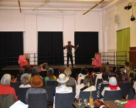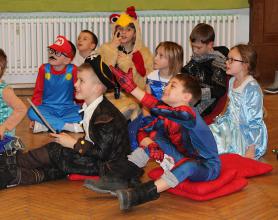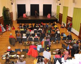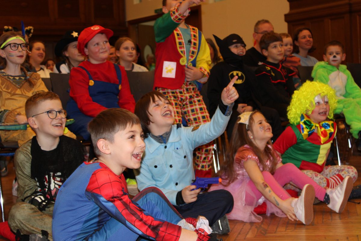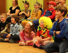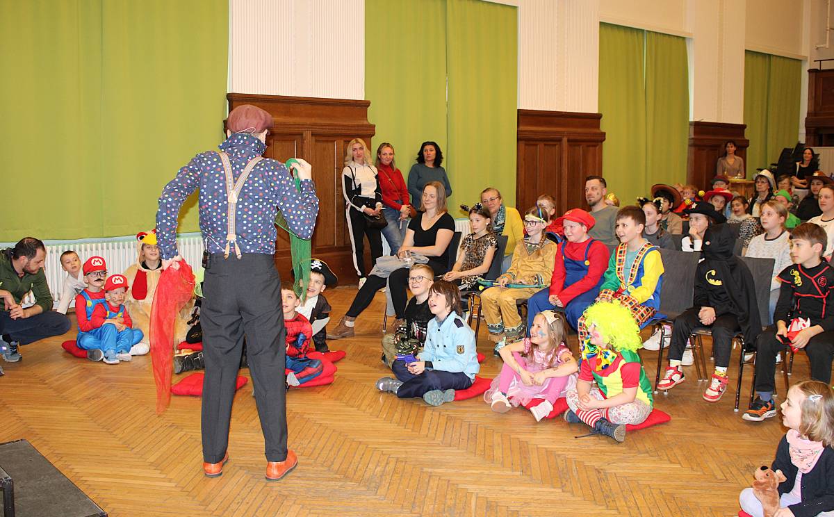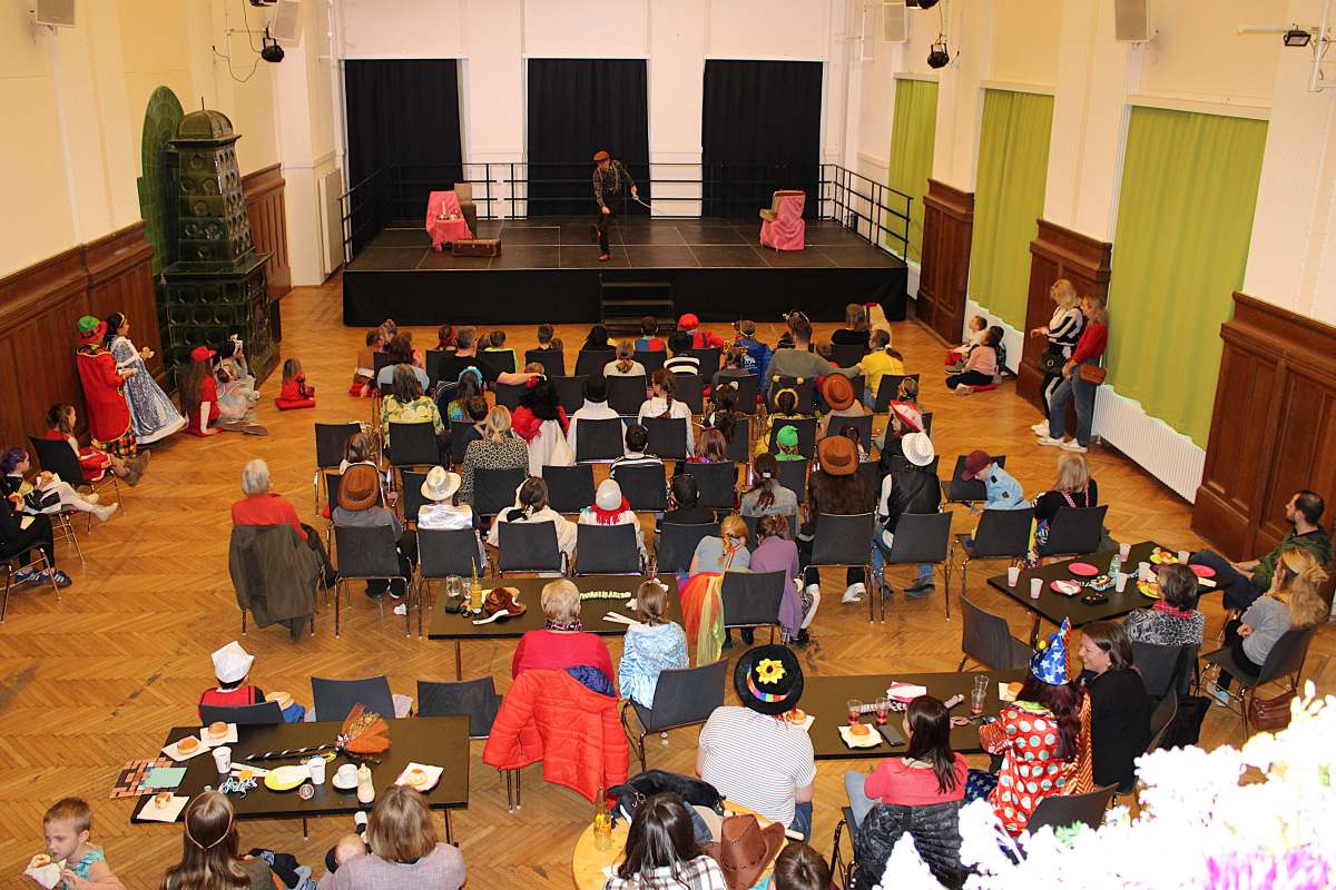 Über 100 große und kleine Gäste trudelten pünktlich um 15.00 Uhr verkleidet, maskiert oder "normal" in den Saal und warteten gespannt auf Daniel Morelli, der mit lautem Rufen und Applaus auf die Bühne gebrüllt wurde.